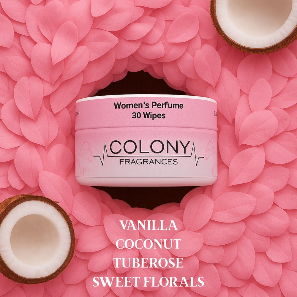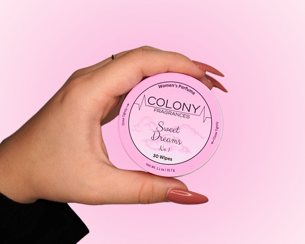 Colony Fragrances wipes are designed for women on the move. Whether you're heading to the gym, stepping into a meeting, or running errands, each slim container fits in your purse, pocket, or carry-on. So freshness is always within reach.