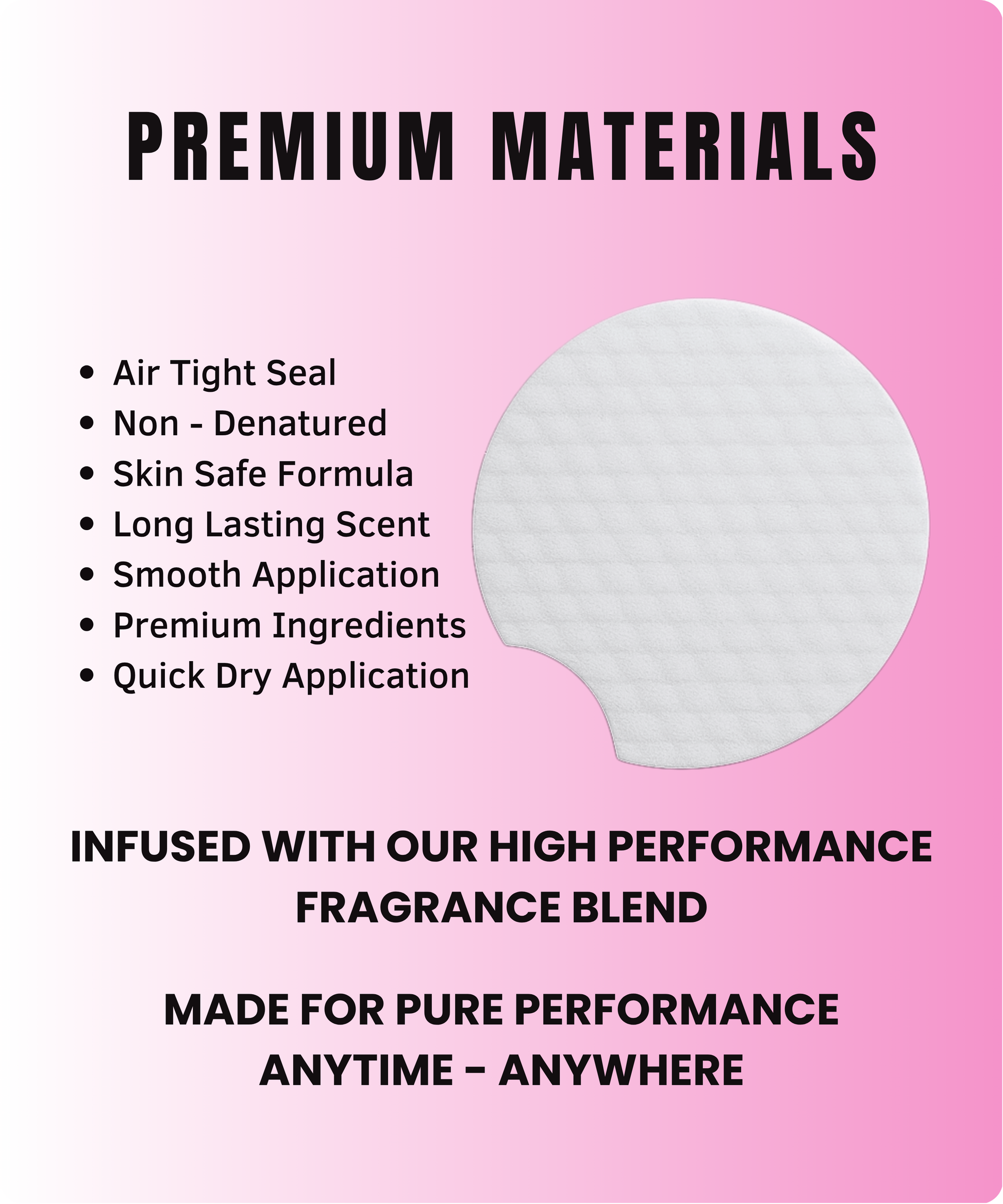 Each wipe is infused with our high-performance fragrance blend. No bottles, no spills. Just swipe it across your skin, and the clean, skin-safe formula dries instantly, leaving a smooth layer of soft, long-lasting scent.